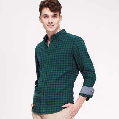 LWF-轻薄法兰绒百搭休闲长袖衬衫男款蓝绿小棋盘格
