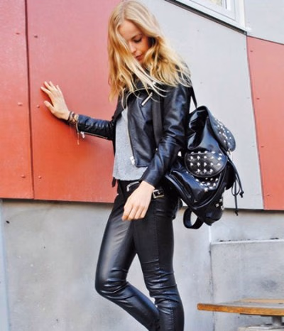 皮衣皮裤,是秋季的主旋律。大走个性张扬风的美眉,都一定很喜欢这样的搭配吧。黑色是很显瘦的颜色,加上皮衣皮裤都是很修身的服饰,所以穿起来显瘦效果也很不错呢。