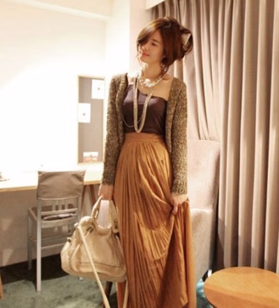 现在就流行换季乱穿衣,毛线外套配长裙,就很有个性!