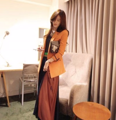 西装外套,秋季那是必备的,韩国时尚剧中很多officelady都很喜欢小西装+衬衣的搭配,太过大众化的搭配是不是落于俗套了呢?尝试新鲜的叠搭法吧。配款背心长裙,就超显优雅气质的。