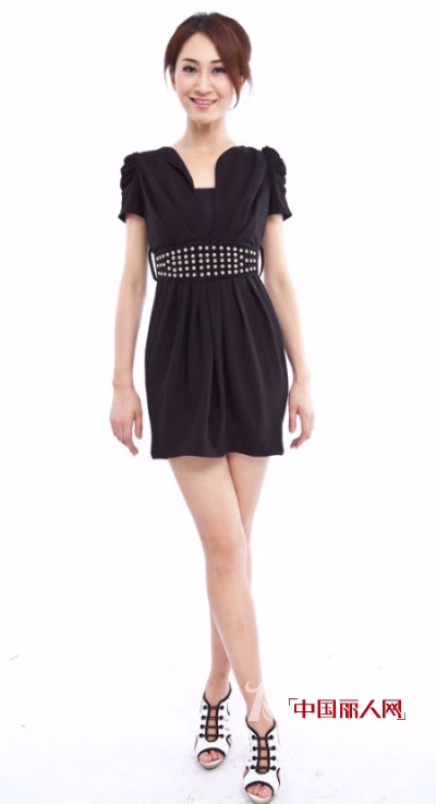 东方写意的韵味。修身的设计显示优雅含蓄的气质,大V领,配以闪片和雪纺褶边,把握甜美与知性的完美分界点。