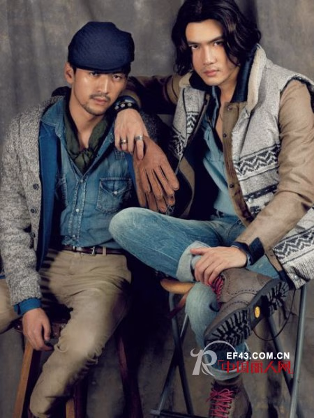 说到工装风格,自然少不了最佳搭档丹宁衬衣。这一季,原色水洗的丹宁衬衣加上粗棒针以及各式复古提花所打造出的狂野西部范儿,让人印象深刻。