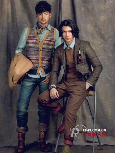 左 丹宁衬衣Zara 蓝色西装Zara 粗棒针开衫Massimo Dutti 米色长裤DKNY 围巾Dunhill 棕色皮鞋Dunhill