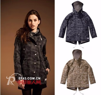 时下街头大热的迷彩风也在DICKIES秋季新款夹克中得以体现。男式迷彩工装夹克运用DICKIES独有的树叶印花图案,赋予TC斜纹面料呈现出有别普通迷彩的惊艳样貌。撞色纽扣设计个性又时尚,内插袋设计增加了功能性,将干练军装传统与精良剪裁完美融合。这个已有90年历史经典的工装大牌,预料将再度掀起热潮!