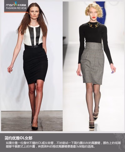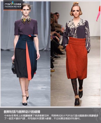 虽然高腰裙是经典不衰的一种复古款式,而近几年的复古风潮也一直未退热,但每一季的新款必然还是需要较为新鲜的元素呈现出来,不可能一种风格一种做法的延续下去,今年秋冬秀场上的高腰裙便了很多新鲜花样,用捆绑式的大气手法打造出随意感的高腰裙多了一些艺术家的气质,而毛线的材质更为新颖,不过如果没有姣好的身材,毛线也容易穿出臃肿的感觉。