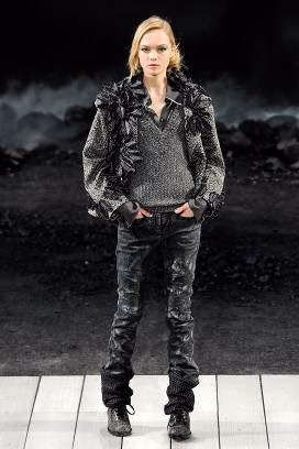 相应于这一季女装中最具影响力的主题从男装中提取灵感,包括整套的黑色礼服以及男式风格的款式。在牛仔中,我们可以看到“男友式”继续流行,比如高街品牌G-Star 和High Fashion的Paul Smith推出的表现在帅气西装马甲、男友式牛仔裤,胯部宽松的裤子与西装夹克和外套的搭配都是不容错过的必备单品。而中性款的牛仔衬衫则更强调了“爷们”的军装细节,更女性化一点的,则用褶皱或是收腰这样明显的细节来加以改进。连面料趋势中的Whimsical Florals 异想天开花型系列的中性和同色提花都展示了细致入微的花朵图案,女人就是要帅到翻!
