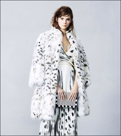 森林般的墨绿,熟透葡萄般浓郁的暗红与黑色构成了芬迪(Fendi)2012秋冬女装颜色基调。白色、荧光黄等亮色点缀其中,让奢华的皮草面料焕发出更有活力的气质。裁成条状的各式皮草经过精细的手工编织成为服装,内里更呈现出马赛克般的效果,正反两面皆可穿着,显现出不同的风情。