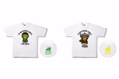 早前知名潮流品牌BAPE 就曾联手过Marvel Comics ,当时候是以超人形象作为蓝本,没想到在一个月后又传来了联名消息,此次无疑是BAPE 旗下的BABY MILO 的“剧场”,似乎来了个Cosplay,将早前红极一时的“复仇者联盟”电影中的超级英雄都演个遍,其中就选用了美国队长,钢铁侠,绿巨人和雷神的装扮,惟妙惟肖的模样实在是太喜感了。本次联名新品中除了几款TEE外还包括了一件FULL-PRINT 的帽衫,这个联名系列也将会在8月11日在东京BAPE STORE发售,喜欢的朋友密切留意了。