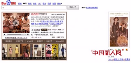 但是,在互联网上,这一场华丽的时装秀并未落幕——路易威登把这趟时尚列车驶入了百度“品牌专区”。现在,你只要在百度搜索框中输入关键词“LV”或者“路易威登”, 不但能看到当天的直播视频,还能看到最新的鞋、包、以及模特各种早秋造型——很显然,路易威登将百度品牌专区当作了此次时尚大秀的重要的在线展示平台。