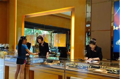 店内,殿堂上悬欧式吊顶,周围欧式壁纸巧夺天工,实木地板与之遥相呼应,尽显高贵与奢华,在格局和陈列上作了部分调整和变化,成品区、裸钻区不变,彩宝翡翠区合为一体,并在进门左手边增加黄金区与原有的黄金区相互辉映,在区域划分上更为明确,便于消费者观赏选购,用“高贵、时尚、奢华”打造出了一个无比尊荣的殿堂级购物环境,更彰显着每一位消费者尊贵的社会地位和生活品味。