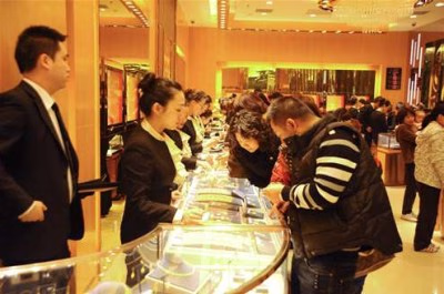 消费者在古丽兰钻石宫殿挑选产品