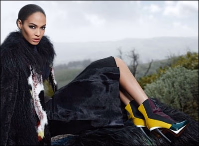 Fendi(芬迪)2012秋冬系列服饰广告大片,老佛爷 Karl Lagerfeld 亲自执镜,超模 Joan Smalls 出镜演绎本季大片,镜头中的 Joan Smalls 身着灰色服装,夸张的泡泡袖突出肩部造型,肩挎拼接箱包,茂密的橄榄树和柏树远远地坐落于身后,构成意大利最具标志性的画面。