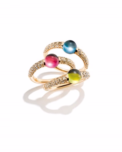 2012年,充满浪漫与智慧意味的情人节礼物非Pomellato(宝曼兰朵)M'ama non M'ama系列(取义自意大利语的“爱我,不爱我?”)新款镶钻戒指莫属:褐钻围绕下的红碧玺、橄榄石和伦敦蓝托帕石指环暗涌着热恋中的喃喃细语。