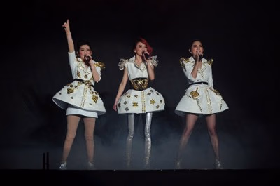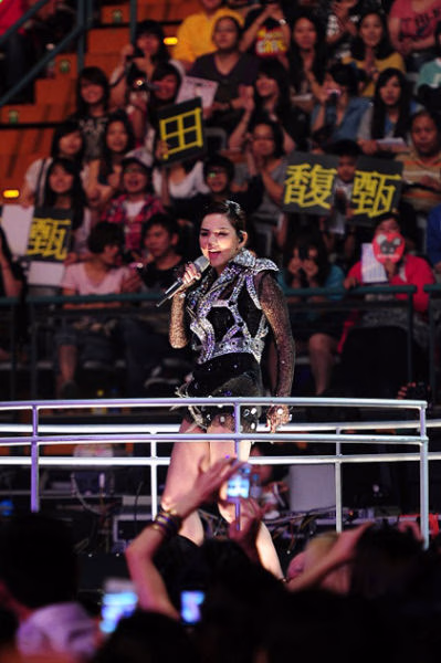 今年超流行的金色,衬托着在舞台上发光发热的S.H.E,三套设计细节都不尽相同,很有特色!
