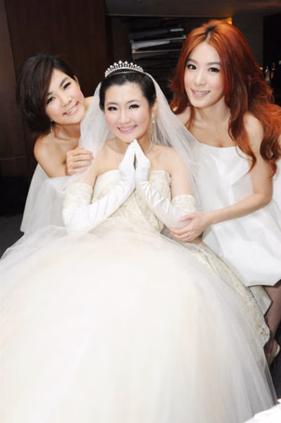Selina大婚之日,三人的白色装扮!抹胸显小性感,凸显肩部的线条美,白色特别能凸显气质喔!