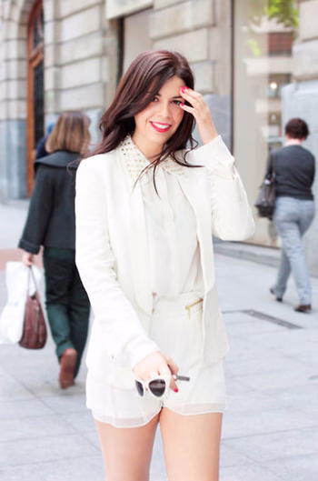 白色的西装,白色的短裤,为办公室增添一抹清新气息