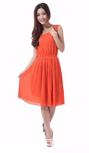 在夏天看到西瓜红特别赏心悦目,它两肩处拼接了撞色PU皮,既能在视觉上收窄肩宽又提升气场,皮质的狂野硬朗与雪纺的轻盈飘逸组合迸发出动人美感。从腰部开始,下摆又巧妙做成了百褶,尤显浪漫优雅。