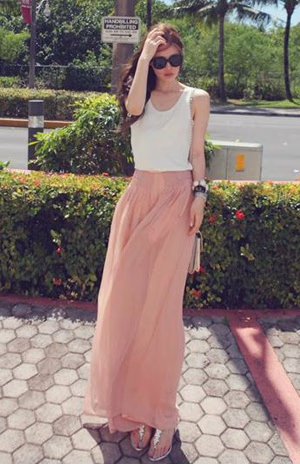 在热天,大部分人都不希望在搭配上大费周章,但若想穿得美又往往是需要用心搭配的事,那不妨来想想两全其美的办法吧。这款休闲套装就正好能达到完美又省心的搭配效果,T恤的休闲活力与拼布长裙的斑斓飘逸组合散发强烈的吸引力,而且它们还可以与另外的服饰另组搭配,让惊喜层出不断。