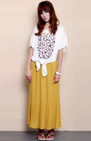 下摆不规则的T恤总能穿出不俗的风格,让其自然下垂修饰胯部两边,潇洒的模样可想而之;将其随意系起放在身前,精致休闲极其耐看。及踝百褶长裙诠释优雅淑女范儿,一双夹脚凉拖将夏日气息从下往上蔓延到底。