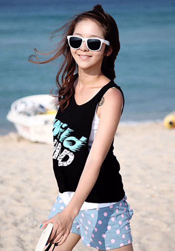 小短款背心T 恤,可以混搭吊带或者抹胸穿搭,毫无负担的清爽单品。略微宽松的版型,随意穿搭出潮味时尚感。搭配波点热裤,逛街出游都不错。