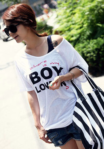 宽松版型T 恤,字母印图个性十足。宽松随意的版型胖瘦MM都可以穿搭,大圆领剪裁,不经意间露出的香肩锁骨最迷人。
