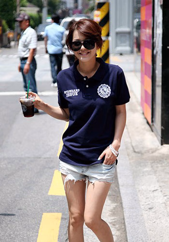 简约纯色T 恤,翻领造型利落大方,拥有男孩风的帅气感。胸前的图案徽章印图增添时尚感,众多明星出街也爱的潮品。搭配热裤就很好看。