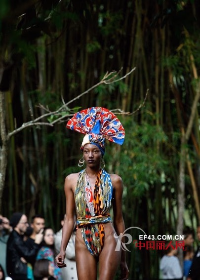 2012年6月14日,2012/2013巴西圣保罗夏季时装周继续上演,模特们在室外草坪上进行时装展示。