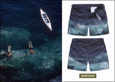 英国男装泳衣品牌Orlebar Brown日前推出最新的沙滩短裤系列,庆祝其成立5周年纪念日。非常有趣的是,这个系列的沙滩短裤,将Slim Aarons,Dennis Hallinan,John Arsenault等人的摄影作品印在上面,而这些作品都与海滩,冲浪等夏日风有关,形成了非常独特的视觉效果。