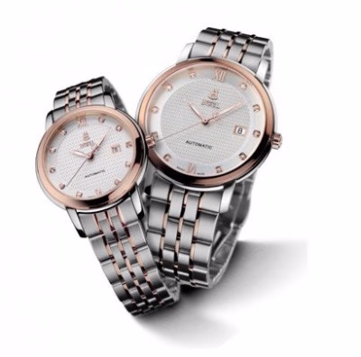 依波路皇室系列彰显欧洲皇室尊崇气派,是蕴含品牌155年光辉历程的百年经典之作!该系列选用高级自动机芯,不锈钢表壳,电镀10微米18K玫瑰金,表面中间扭索状装饰花纹,镶嵌10粒天然钻石和罗马数字刻度,3H位日历显示,带荧光表针,男款儒雅大方,女款精致优雅。