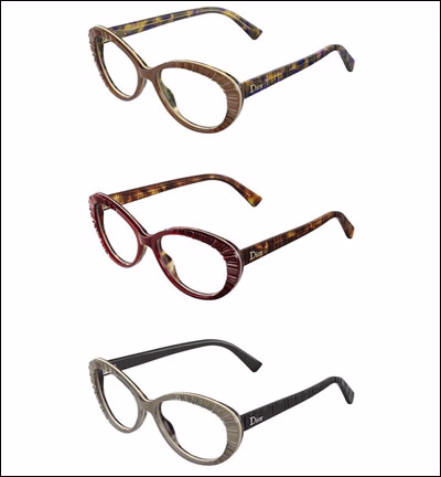 为了呼应Dior 高级成衣的材质与面料,Dior 为 2012秋冬眼镜系列特别订制了醋酸纤维材料,展现出斜纹软呢、褶皱和通透等设计元素,呈现永恒的优雅风貌。DIOR TAFFETAS眼镜设计灵感源自高级定制的褶皱,展现出丰富的层次感,更令你目光深邃神秘。