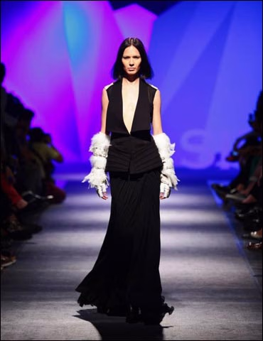在此秋冬系列发布前的三年时间里,设计师高杨更是通过对不同材质的把握,将面料与创新带入设计中。“棉材质在此次设计中的运用,恰恰可以从一个侧面体现出自然与现实生活的实用主义结合,加之配合羽毛及羊毛的拼接,则让我对棉材质的设计及运用更加有信心。”