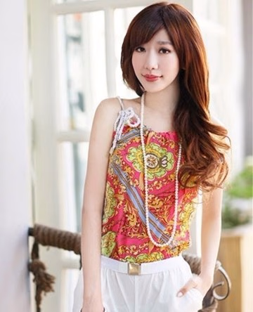 浪漫的斜坡卷发,女孩身穿波普风的上衣,搭配百搭圣品——白色短裤,这套民族风特色的装扮,养眼、迷人,绝对帮你赚足异性缘。