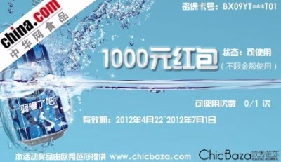 由欧秀芭莎提供1000元红包