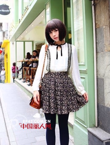 纯白衬衫+碎花背带半身裙,裙子合适的长度,刚好露出美眉纤细的长腿。怎么样?矮个子美眉只要穿搭合适,照样可以萌翻全场吧!