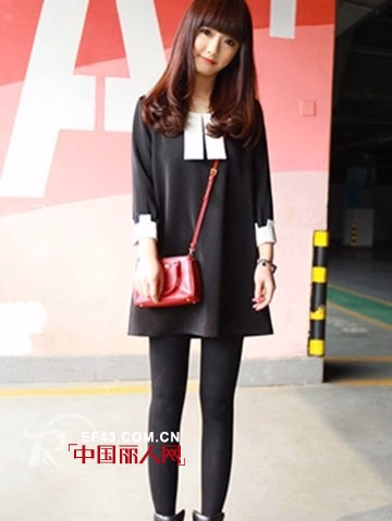 黑白色系的连衣裙,款式经典、大方,不过膝的设计,大秀纤细的美腿,清甜的样子很是惹人喜爱。