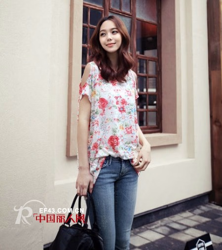 宽松版型的印花T恤,像是一幅精美的水彩画,肩部镂空设计,有显瘦效果。