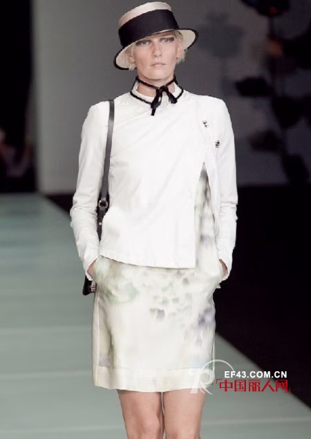 虽然本季Emporio Armani的风格元素有些太过科幻,像是假领围、冰冷的色调以及斜戴的硬草帽,但印花裙上的口袋元素,却提醒了许多设计师:不必太拘泥于女性风格,适当的实用元素会令时尚更贴近生活。