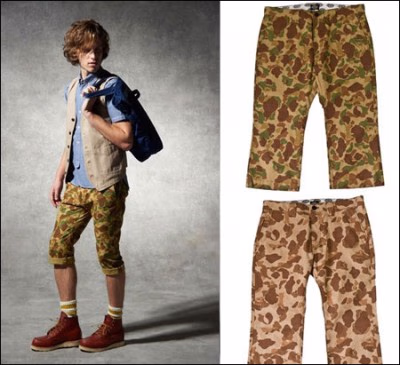 以山核桃树的果叶果核为主要图案的迷彩短裤较之普通迷彩裤色彩更加丰富,这个新鲜的组合大有童心未泯的效果。裤腿中心的压烫设计使整体剪裁看上去十分立体,简单搭配一件Tee帅气的同时又不会太浮夸。