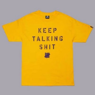 今年NBA球迷中最开心的当属洛杉矶的球迷了,因为他们的城市有两支球队进入了NBA的季后赛,虽然自从Chris Paul及Blake Griffin来到快船队以后得到了众多粉丝的关注,但不得不承认洛杉矶的标志性球队还是由Kobe带领的湖人。而一直支持湖人队的洛杉矶潮流品牌Undefeated再次为他们推出了特别款T恤,运用了湖人标志性的黄紫配色,而在黄色T恤的正中央则印有“KEEP TALKING SHIT”字样。此款T恤已经开始在UNDFTD发售,湖蜜们还等什么呢?