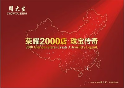 2009年12月,周大生珠宝连锁店突破1000家,圆满实现“千店计划”。2012年,周大生全国珠宝连锁店数近2000家,周大生以令人震惊的速度,在周大生珠宝帝国版图上描绘着宏伟壮阔的篇章。