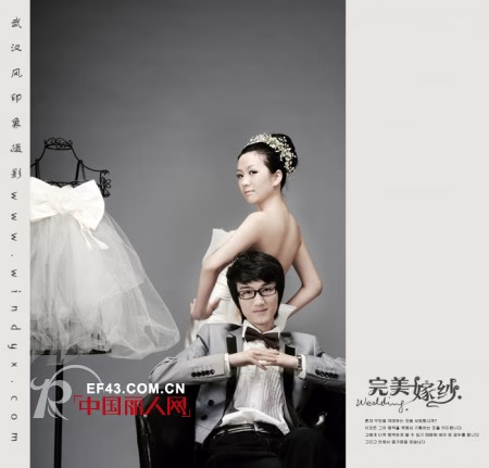 新娘着淡粉红色的绸纱长裙,线条流畅,显得华丽、高贵。新郎宜穿深色礼服。新郎新娘风格上的统一而极具美感。