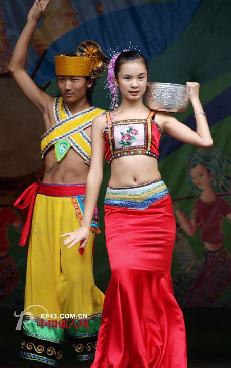 傣族服饰在民族服饰中相当具有特点,尤其是傣家少女的服饰更是婀娜多姿。妇女服饰上身服装淡雅,下身大红大花,扎包头,发上插各种花、梳子或装饰等,与过去基本相同。不同的是料子的质量、花色品种、服装的 式样等,都有了很大的改进。