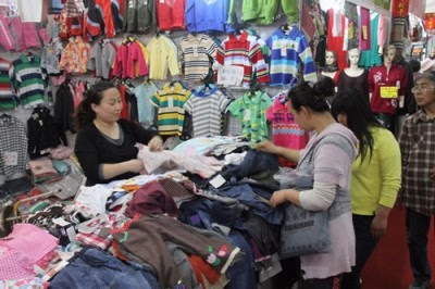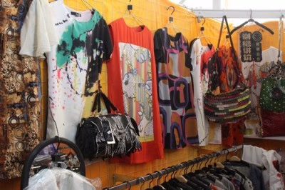 在五棵松大集上个性牛仔系列产品深受姑娘和小伙们的亲睐,有手绣花的、镂空花的,各种牛仔T恤、牛仔衫、牛仔裤、牛仔裙等品种。价格比专卖店便宜60%。
