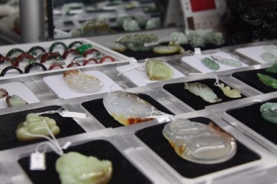 常言道,黄金有价玉无价。如今生活好了,都想买个玉器玩意儿带带,可那天价的翡翠,只有少数人买得起,那些翡翠A货好料挑出精工磨出绝世之作,而那些翡翠A货的边角料也得找出路。于是乎,玉器厂的能工巧匠将这些“废弃”的玉石料,精雕细刻出精美的各种挂件、手镯、手链、耳环、项链及各种饰品。在五棵松大集的几家摊位上,30元左右就能淘到一个翡翠吊坠,100元左右就能买到一个翡翠手镯,摊主明明白白的告诉您是A货,只是质地不同罢了。若是激光增色的,摊主也会告诉您。在摊位上也有高档的翡翠手饰,有国家权威检验机构的证书,其价格比大型珠宝商店便宜一半以上。您逛一逛可以货比货,不会吃亏。别迷信大商场,相信您的眼力,相信价格比,相信实惠,别图“××大商场”买的之虚名。您当它是手工艺品买便宜,带着玩,心态就平衡了,说白了,50元一件的玉器也就够工钱。五棵松大集内的手饰摊主,他会明明白白告诉您是A货或是B货,绝不会欺诈您,让您消费个明白,不会以B充A蒙您。您选购时问问清楚便是。