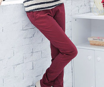 不想过于鲜艳的色彩胜过你的光芒,穿上枣红色铅笔裤就十分对路了,少了华丽和疯狂,增添了许多优雅和低调的实穿性在里面