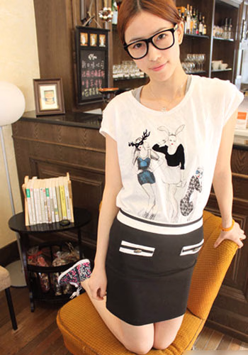 必入手小白T一枚,是兔女郎么?哈哈要不要这么搞怪啊,图案很IT啊,面料适中,亲肤的棉质,型上和一般的小T稍有不同,袖口处有点点小设计在的。