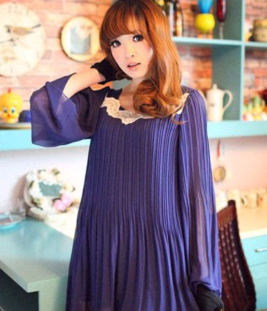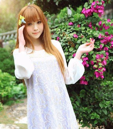 女生最爱的雪纺与蕾丝的结合,诠释出最浪漫的情怀。奢华的蕾丝覆盖在雪纺裙上,似乎绽放出了一朵朵美丽的花,令人感觉很是惊艳。白色和紫色的映衬,呈现出优雅的动人气息。利用灯笼式设计的袖子,稍稍迹住手臂线条,一举两得。