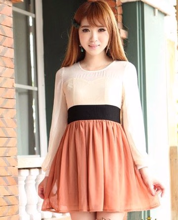 拼接的元素可以说已经成为了另一种永恒经典,运用绝佳的拼接技术,在胸前营造出抹胸的式样,姣好的勾勒出美好的胸部曲线。米白、纯黑、珊瑚色的撞色拼接,带来了丰富的层次感。半透明的衣领跟袖子,引起了无限的遐想,显眼的腰带,收紧了腰部,显出了腰线。