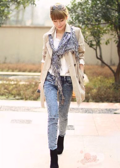 时尚解析:很OL范儿的穿搭,办公室必备白衬衫搭配大地色风衣,干练潇洒,围巾的系法很特别哦,喜欢的MM赶快学起来。