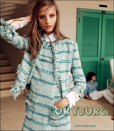 Tory Burch2012春夏女装秀的灵感来自于一座法国城市Deauville。这是设计师Tory Burch20多岁事业刚起步时待的地方,它同时也与另一位传奇女性——Coco Chanel女士有着千丝万缕的联系,那就是一样冷静与清醒的头脑。